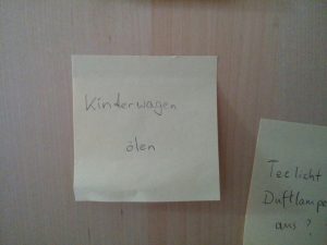 Das war der Merkzettel für die Kita, wenn Schwimmbadtag war. Diese Zeiten scheinen schon so lange her. Heute liegen die Jungs am liebsten auf dem Bett, hören Radio und chillen. Merkzettel haben wir auch keine mehr.